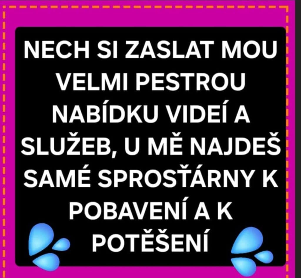VÍTÁM TĚ V MÉM KRÁLOVSTVÍ ONLINE SPROSŤÁREN .PRODÁM SVÉ VELMI INTIM., ŽHAVÉ,LUXUSNÍ, SPROSTÉ,EROTICKÉ VIDEIKA- BEZ CENUZRY S OBLIČEJEM RŮZNÉ TÉMA 550KČ.- MASTRUBACE S VIBRÁTOREM , ANÁLEK, PISS, PERVERS  BJ, STRIPTÝZ,SEXY OBLEČKY,SEXY PLAYBOY, SEXUCHTIVÁ  POLICISTKA,SEXY DRAČICE, NADRŽENÁ SPROSTÁ ŠKOLAČKA,LUXUSNÍ KURVIČKA, SENDVIČ, VZDYCHÁNÍ, PERVERS MLUVA,MÉ DOMÁCÍ PORNO  PRO MLSNÉ JAZÝČKY.. VE VIDEÍCH MŮŽEŠ VIDĚT, JAKÁ JSEM DRAČICE A CO JE VE MĚ.!!DÁLE-PRODEJ FOTEK /DOMINANTNÍ INSTRUKCE K HONĚNÍ PENISU,JOI VIDEA,MASTRUBAČNÍ DOMINANTNÍ TÝDENÍ PLÁN,  PORNOHLASOVKY, ,HODNOCENÍ PENISU,SEX PO TELEFONU, WEBKA.–DLE ČASU.PLATBA PŘEDEM NA ČESKÝ ÚČET, NEBO REVOLUT. PESTROU NABÍDKU TI RÁDA ZAŠLU NA WHATSAPP.  POKUD TI JE 18+ A HLEDÁŠ EKSKLUSIVITU. JSI U MĚ SPRÁVNĚ.TVÁ ONLINE MILENKA SABINKA,ANDĚL S ĎÁBLEM V TĚLE.,SEXY BLONĎATÁ MODROOKÁ DRAČICE.